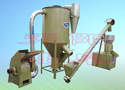 93KWP-330D草糧型(錐型壓輪,三輥同步調(diào)壓)由粉碎機、旋流分離器、輸送機、臥式混料機、顆粒飼料機,顆粒風干機組成。總裝機功率:45KW,48600元/套。